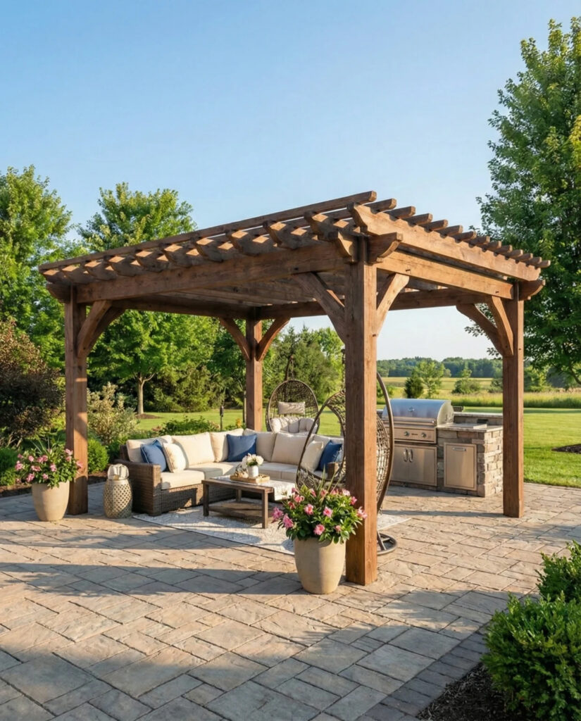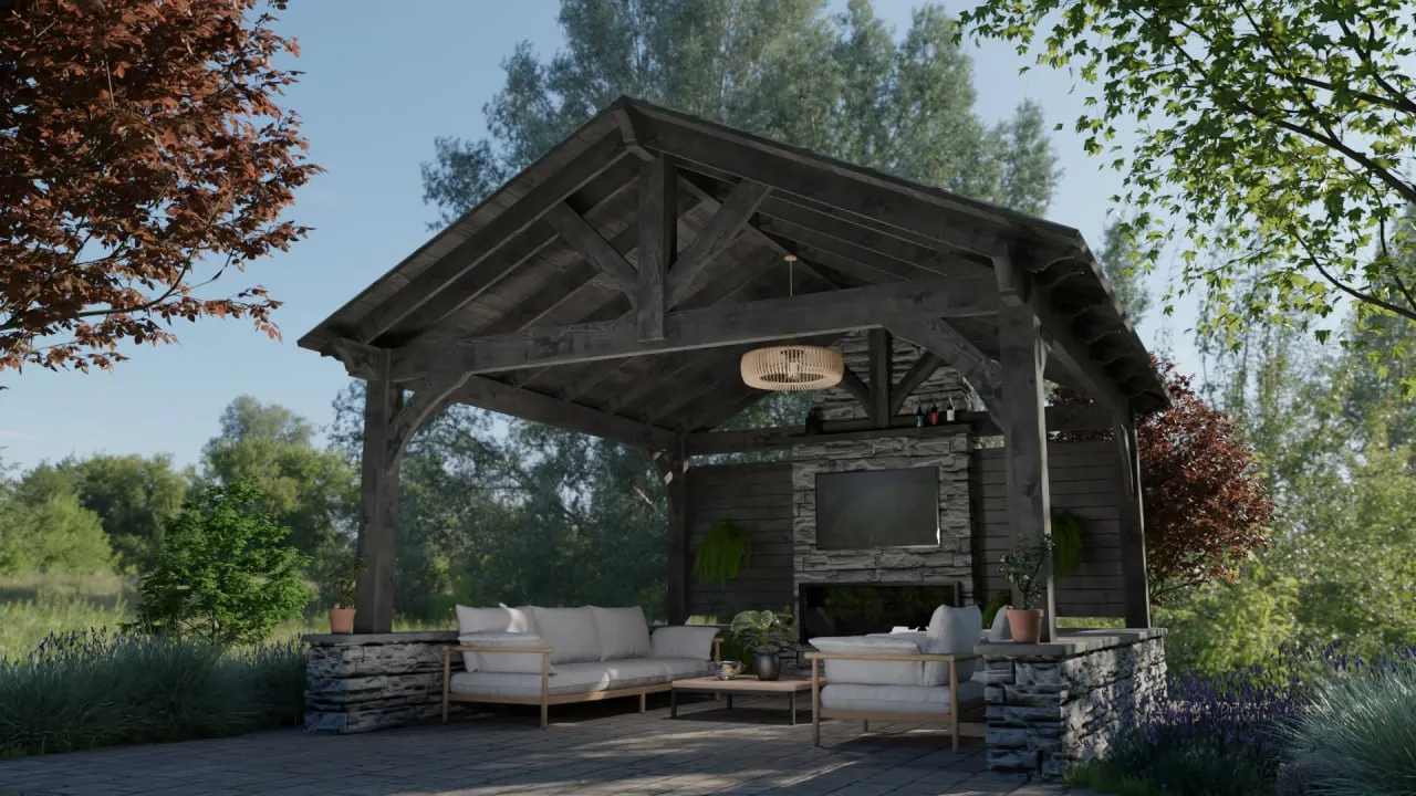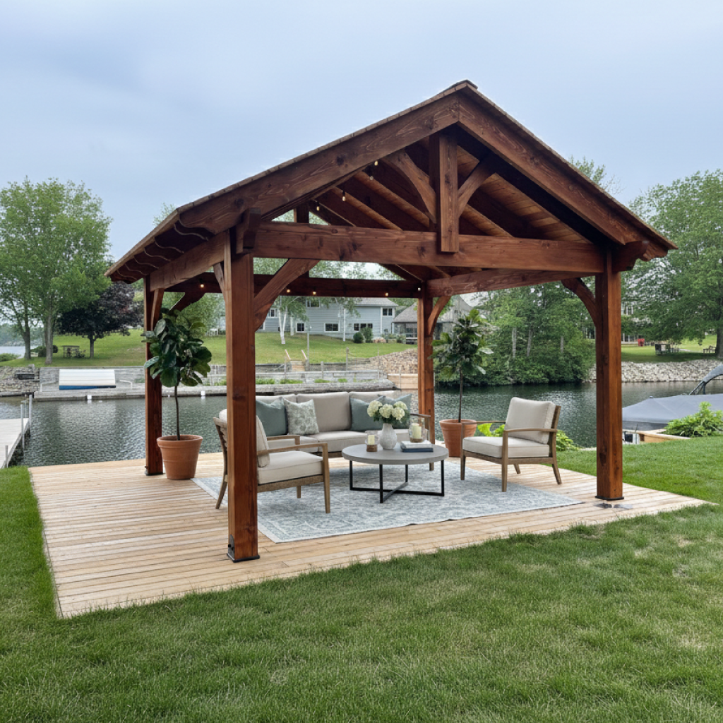 Our timber frame pavilions and pergolas are crafted from high-quality Douglas fir, a premium wood known for its strength, durability, and timeless beauty in outdoor structures.